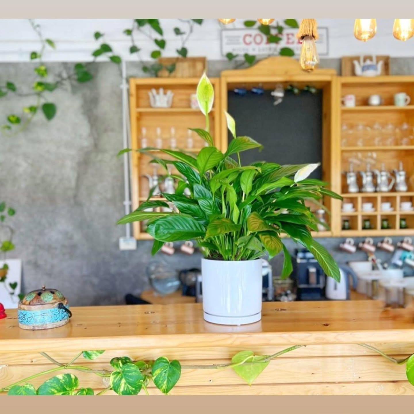 Peace Lily loves indirect light and a drink when the top soul is dry.